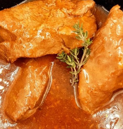 Heerlijk zachte rosbief koud geserveerd met warme stroganoffsaus