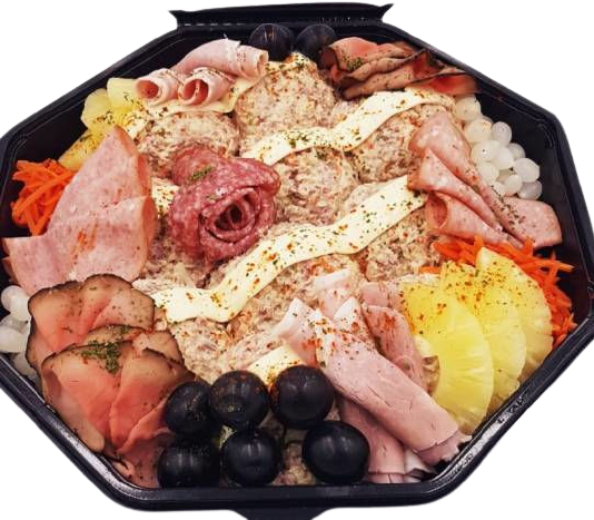 Al onze salades worden ruim gegarneerd met diverse soorten fruit, vis en vleeswaren. Ook leveren wij bij onze opgemaakte salades stokbrood en kruidenboter